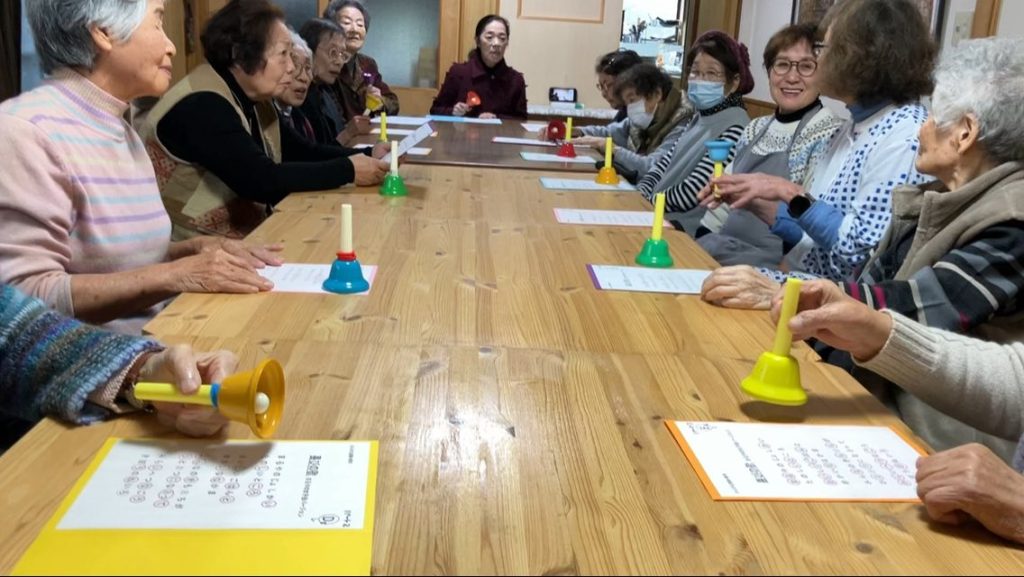 平均年齢83歳、思わずアンコール~人前効果が生んだ、まるやの女子会のベル演奏