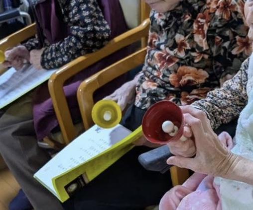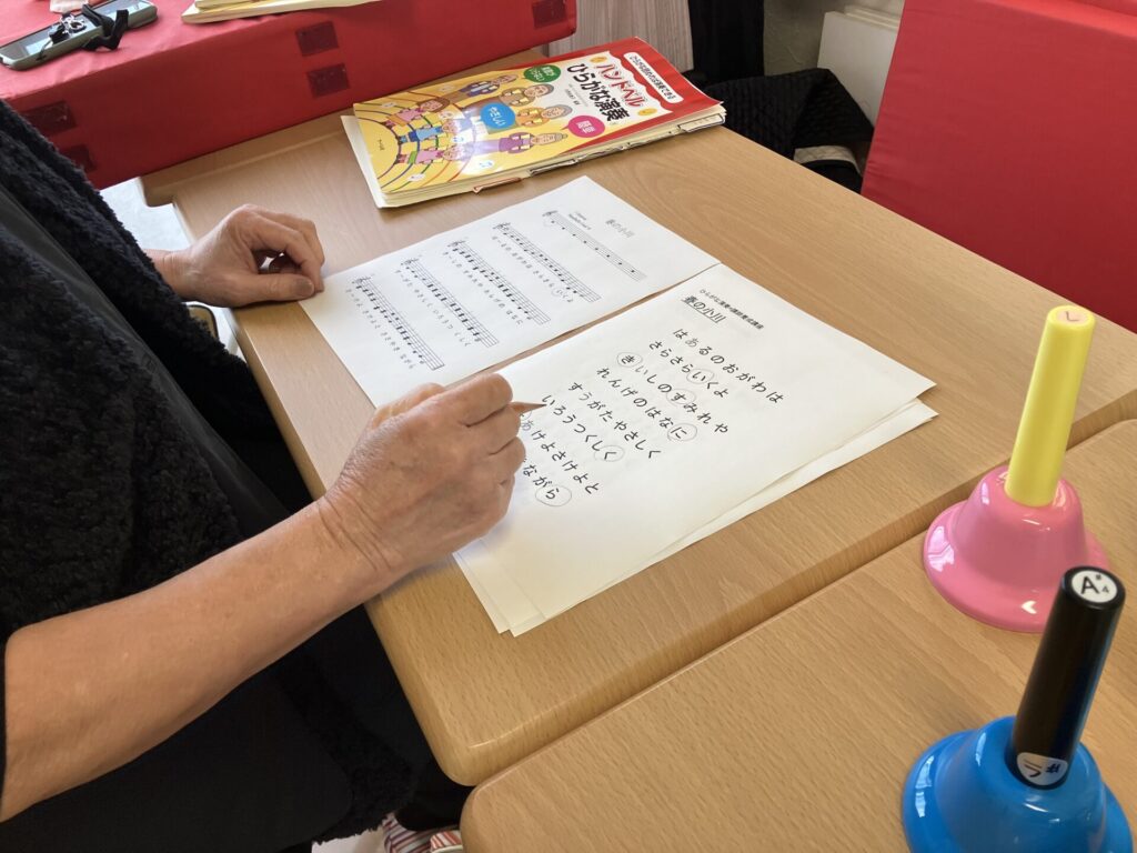 歌詞カードを見ながらベルを鳴らすだけなので、介護施設や高齢者施設でも安心して取り入れていただけます。